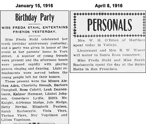 Stories in the Vallejo Evening News mention both the party and the April adventure.